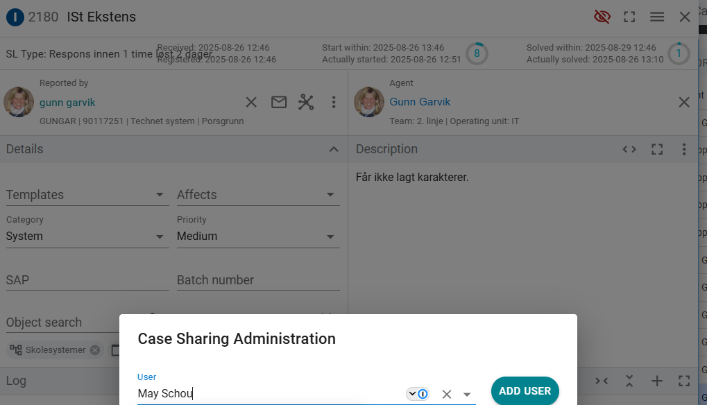 Added support for sharing cases with users that don't have access