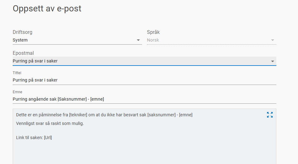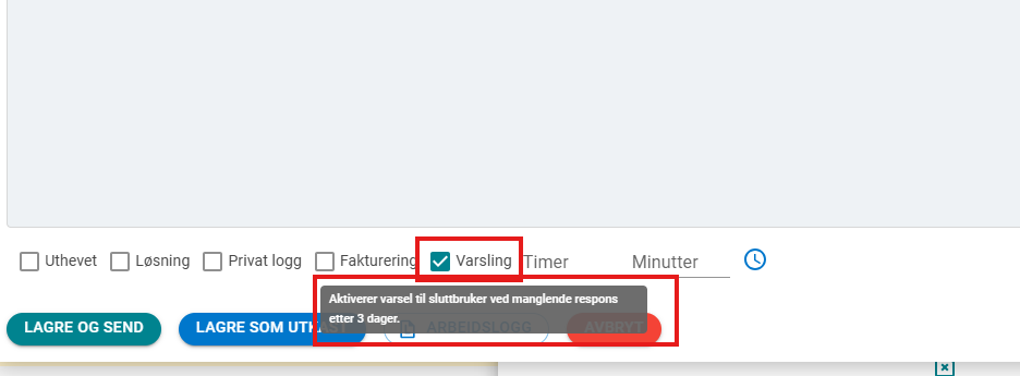 I e-post til bruker som sendes ut kan saksbehandler sette opp en automatisk "purring på saken " Dersom bruker ikke svarer innen 3 dager.