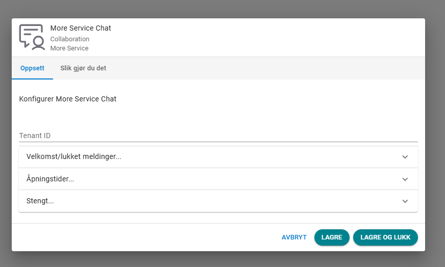 Muligheter for å konfigurere velkomstmeldinger, åpningstider,