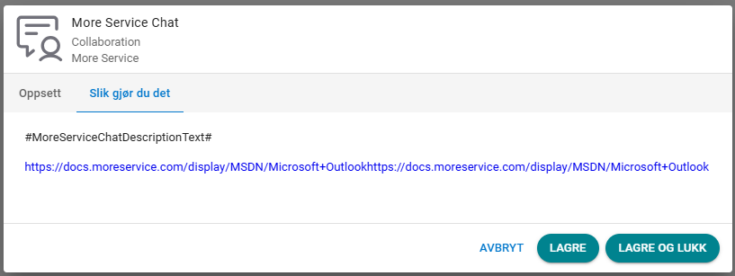 Fane "Slik gjør du det" følg linken for å kunne konfigurere å ta i bruk chat med Microsoft Graph APi
