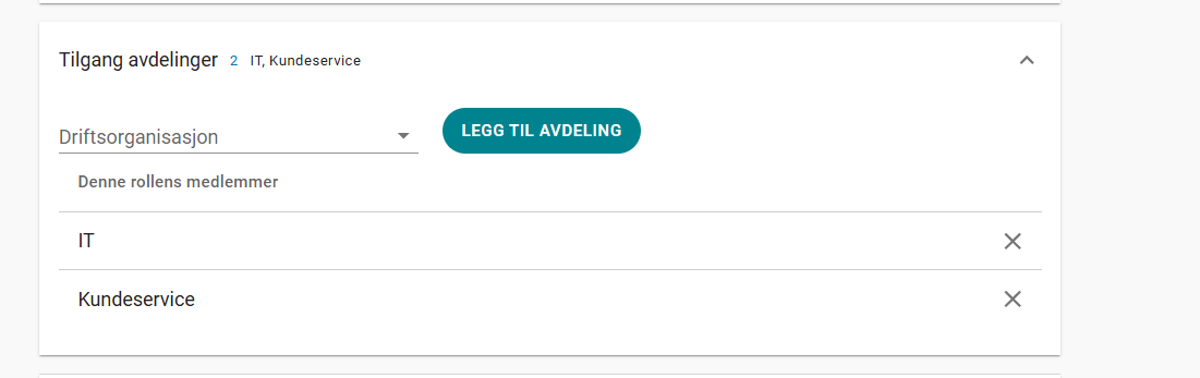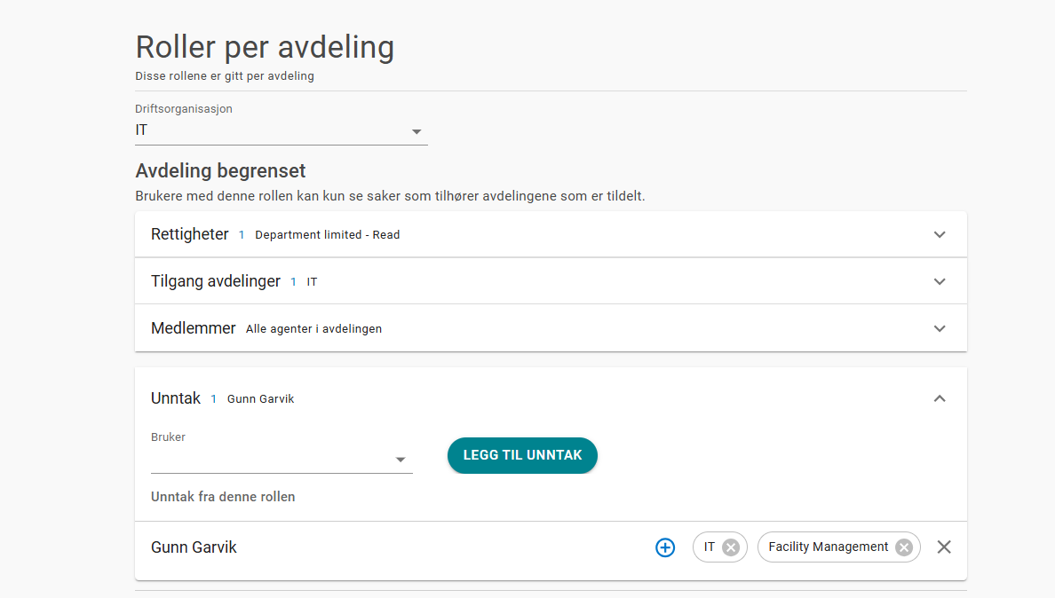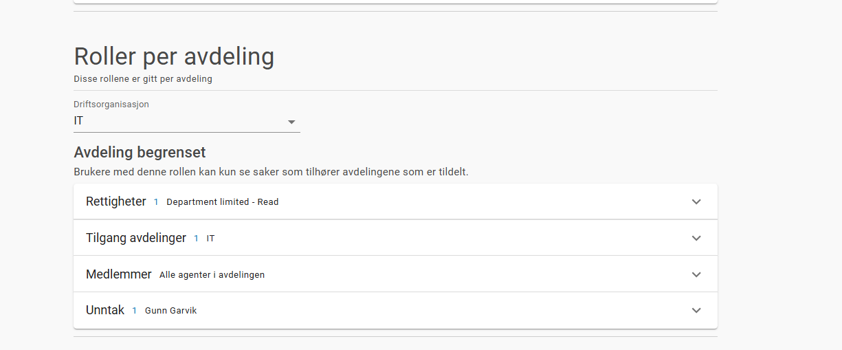 Det kan tildeles rettigheter til avdelingen, for å se saker i andre avdelinger(driftsorganisasjoner)